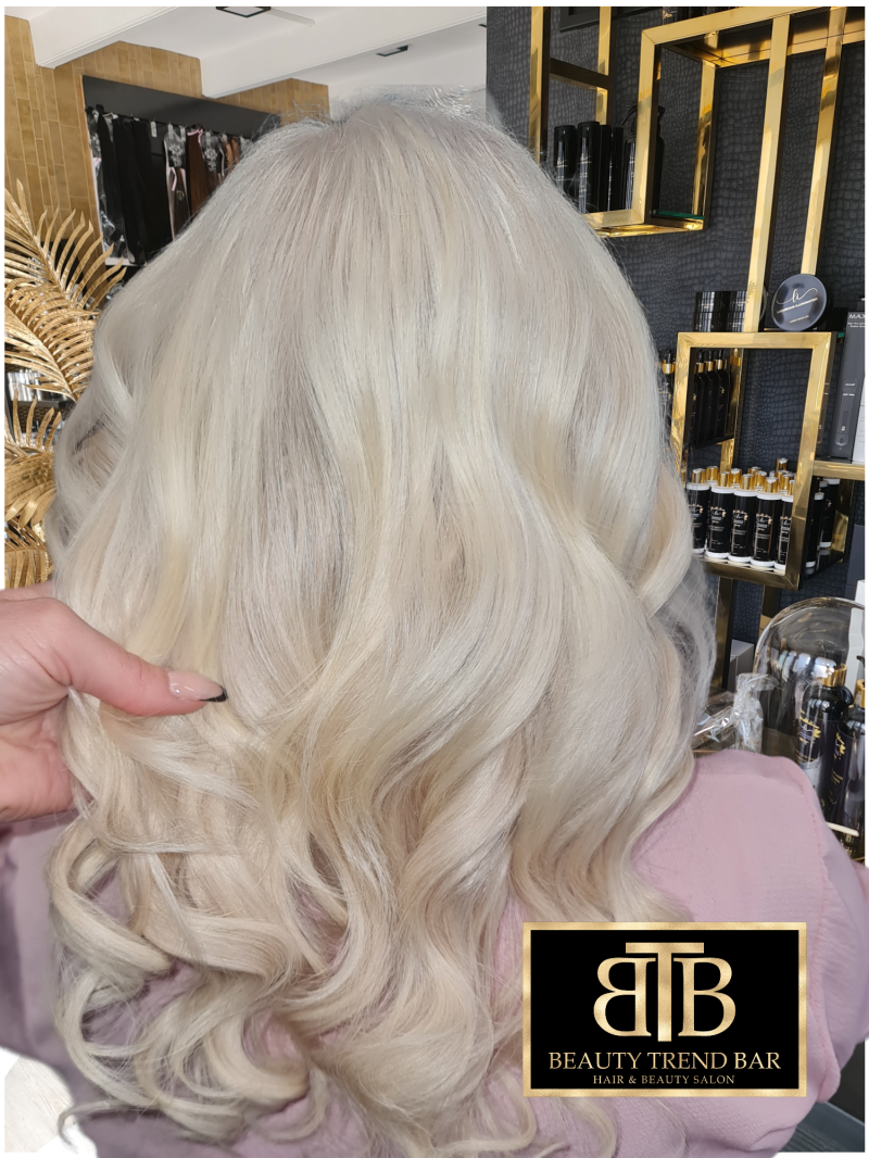 Fullhead babylights +no yellow shampoo +Ice/silver toner